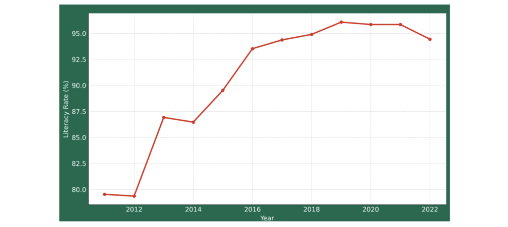 Through targeted frameworks such as FSSAP, the Female Stipend Programme (FSP), and other long-term initiatives, Bangladesh achieved a historic leap in female literacy—from 79.5% in 2011 to 96.1% by 2019. Even during the global pandemic, rates remained above 94%, confirming that the progress was sustainable rather than circumstantial.
